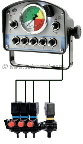 A simple, reliable solution for basic sprayer control. The Switchbox Controller operates boom section valves and pressure regulation valves, with an easy-to-read pressure gauge that keeps operators informed for quick adjustments. Compatible with three-wire boom section valves and two-wire regulation valves, it delivers straightforward control without the complexity.